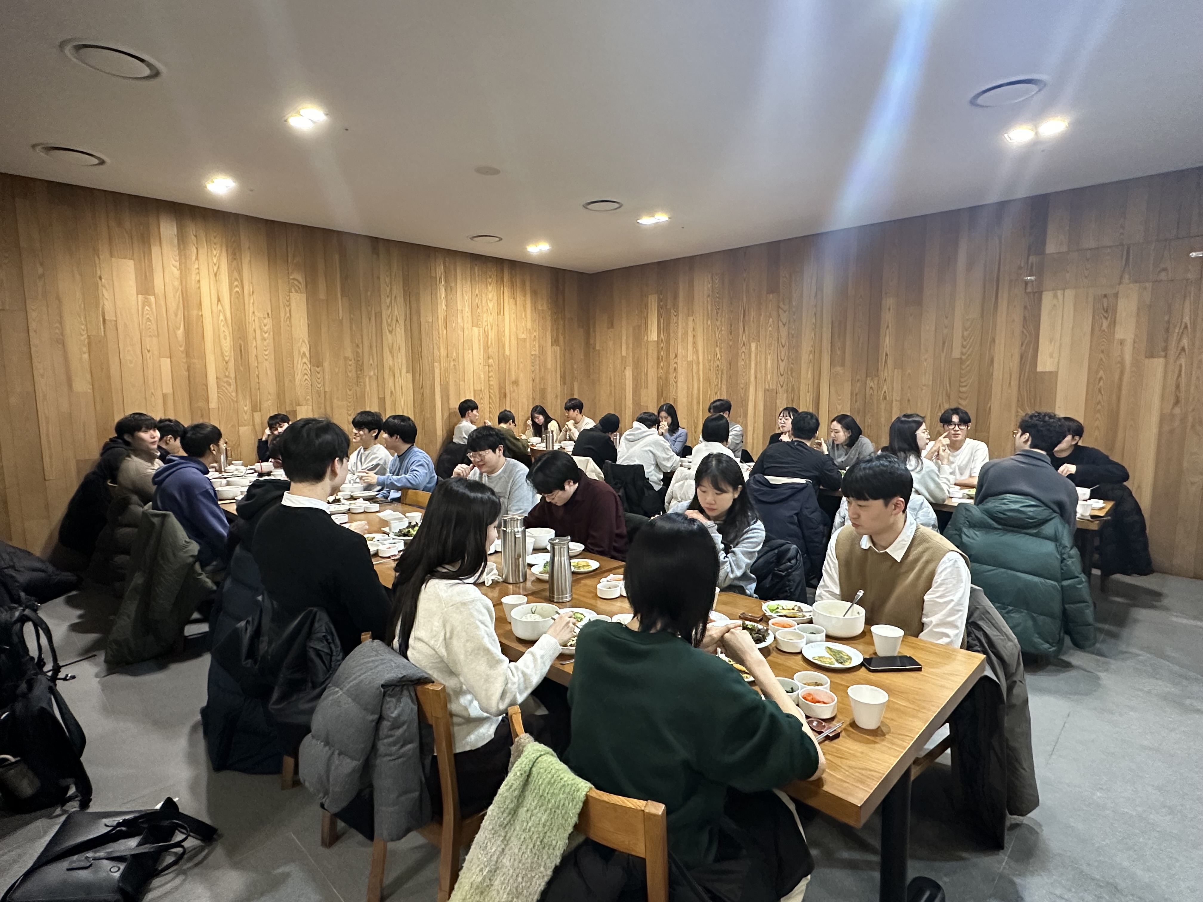 - 2026 SNUEI 윈터스쿨 첫날, 참가 학생들이 단체 식사를 하며 교류하는 모습